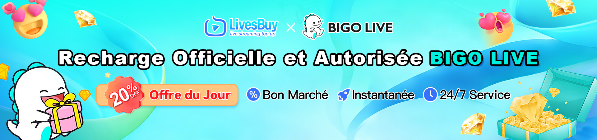 Revendeur officiel agréé de BIGO LIVE, nous proposons un service de recharge de diamants BIGO LIVE au prix le plus bas et avec une livraison instantanée.