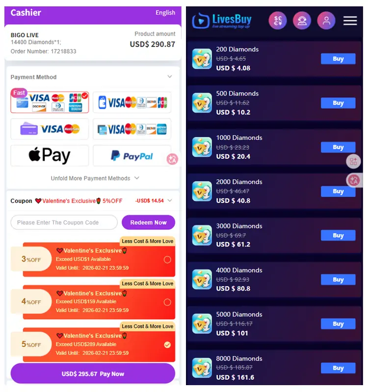Exclusive Discounts for BIGO LIVE Diamonds Recharge