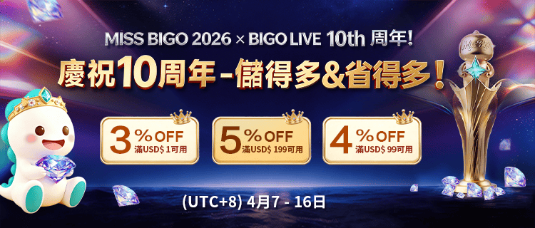 邀您慶祝BIGO-10週年盛典~5%優惠券等你領!來livesbuy儲值即省