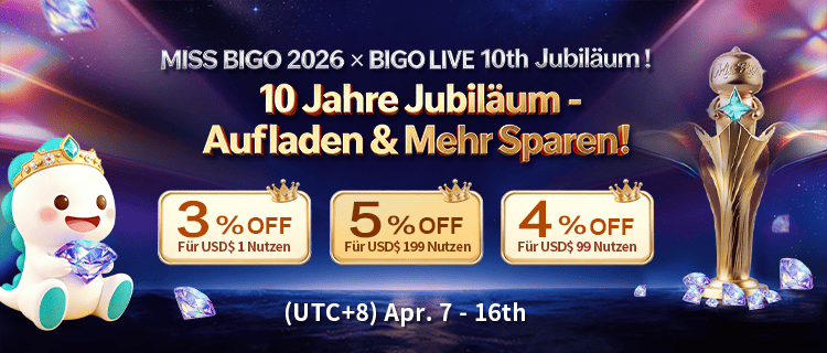 Lade Diamanten günstiger auf! Unterstütze deinen Gastgeber beim Gewinn des Titels MISS BIGO 2026!